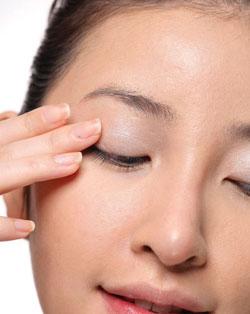 在这款自然的妆容中,眼影的颜色应选用贴近肤色的米色系或者淡棕色系。用眼影刷将颜色均匀的扫在眼窝处,由靠近睫毛根部的位置向上把颜色带上去,制造自然的眼窝。