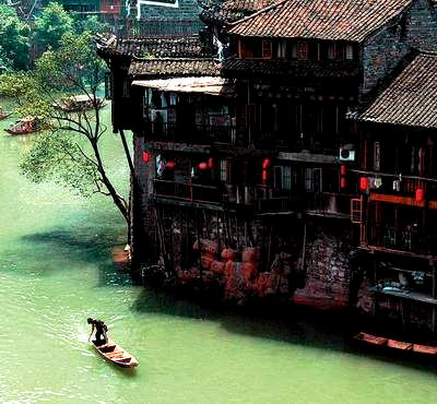 湘西的凤凰古城,也是近年都市人旅游的热点。每到春天,凤凰的沱江旁,成千上万大大小小筒车,吱吱攸攸地转动,用河水浇绿田园和山庄。苗族、土家族的人们,用古老的方法榨油、造纸、碾米、织布,用筒车提水灌田,小城四处一片平和景象。都市繁忙的人们,在这里将圆你一个田园生活的梦!