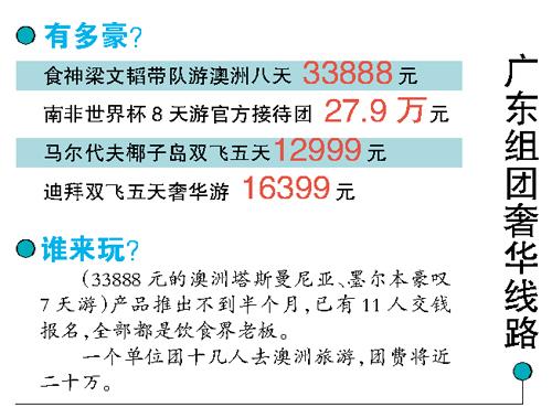 食神梁文韬带队游澳洲,八天游报价33888元;去南非看世界杯,官方接待团报价27.9万创历史纪录……这些高价旅游团目前频频出现在旅游市场上。