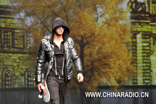 神秘的钴蓝色渐变或格子的图案结合金属银光拉链的辅料装饰,在冬季棉茄克中表现为既时尚又具有成衣化的实用。发布会上,当今所流行的毛呢短派克,针织外套的设计中体 现了设计师独到的结构创新、版型变化和市场概念,这场以表现中国男装流行趋势的发布会,不仅仅是一场秀,更多的是表现了时尚于成衣设计中,趋势于市场的表现中,设计师注重市场、注重创新,在表现时尚前瞻性,流行的预测性方面十分到位。