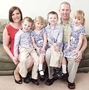 鲍登(左)和安迪(右2)与两对龙凤胎在一起