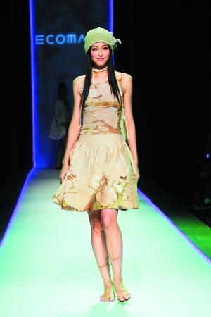 模特穿的时装是用玉米杆作为原材料,低碳、环保。 记者 林建敏 摄