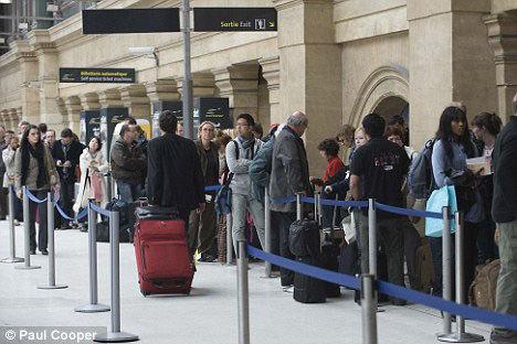 旅客排队购买“欧洲之星”的车票,寻找回家的途径。