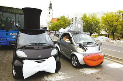 另类婚车吸引眼球:戴礼帽佩蝴蝶结很绅士(图)