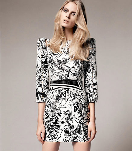 充满着质感的立体印花铺陈在裙装上,肩部加强了细节处理,强势冷硬的轮廓与印花有着强烈的对比,冲突感十足的设计用长袖短裙来表现,显瘦度大加分!