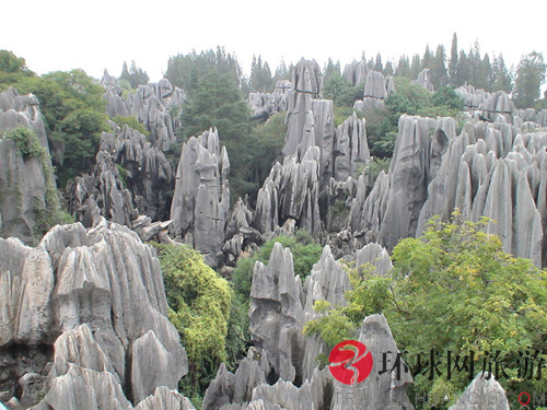 昆明石林是一座名副其实的由岩石组成的“森林”,穿行其间,但见怪石林立,突兀峥嵘,姿态各异。由于石灰岩的作用,石柱彼此分离,又经过常年的风雨侵蚀,无数的石峰、石柱、石笋、石芽、形成了集奇石、瀑布、湖泊、溶洞、峰丛和丘陵于一身而显得千姿百态的石林。