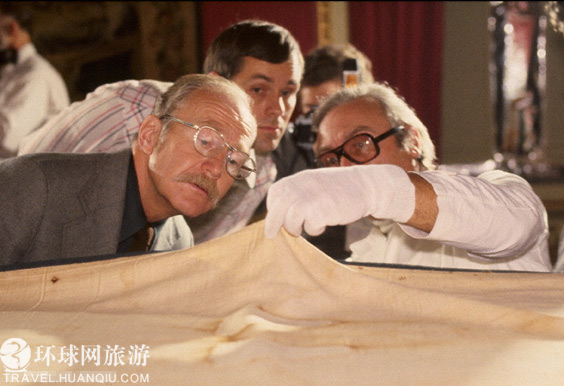 影像身高1.8米,长发垂肩,双手交叉放置于腹部,在头部、手部、肋部与脚部有清晰的红色血渍状色块,正与圣经上所记载的耶稣钉死时的状态相同。