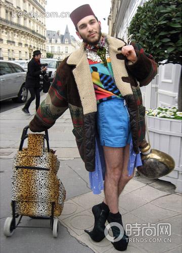 济公+妖男+流浪汉style的美妙融合!别看他乍一眼好像穿得很随便很破烂,这一身一点也不便宜的,Stella McCarthy的女装(注意是女装!)无跟鞋(没记错的话),还有那虎皮包应该都价值不菲!