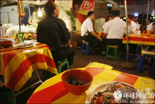 避开白天暴晒的日光,夜幕降临时分,伴随‘归心似箭’的车辆疾驶声以及喧闹的人群声,在路边吃摊前驻足小饮一杯吧。