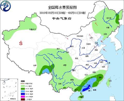 中央气象台5月10日17时发布未来三天全国天气预报: