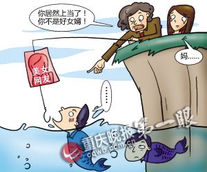 丈母娘“钓”金龟婿有了新版本。昨上午,大渡口区春晖路街道柏华社区干部向薇告诉记者,她有一个27岁的朋友,相貌堂堂,家境富裕,眼看下月将与女友领证步入婚姻殿堂,准丈母娘却使出一招“钓鱼”考验,以少女身份上网与他聊QQ,并相约见面。他认为见个网友无所谓,欣然赴约,才发现自己被“钓鱼”。