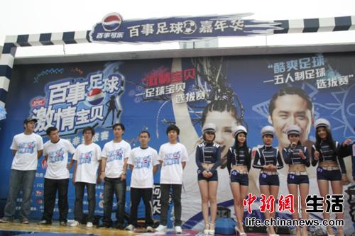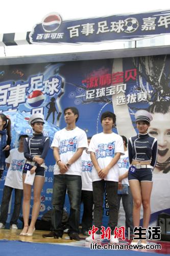 中新网5月17日电 近日,“百事足球,激情宝贝——走进南非选拔赛”足球梦之队6强选手再次前往足球嘉年华,给观众带来视听新感受。虽然天空下起绵绵细雨,但还是无法浇熄大家对活动的热情,6强的球员们唱歌、跳舞、玩技巧样样精通,与足球宝贝5强配合也十分默契,最终通过足球知识的问答,决选出2位最佳球员赢得了与足球宝贝一起前往南非的通行证。