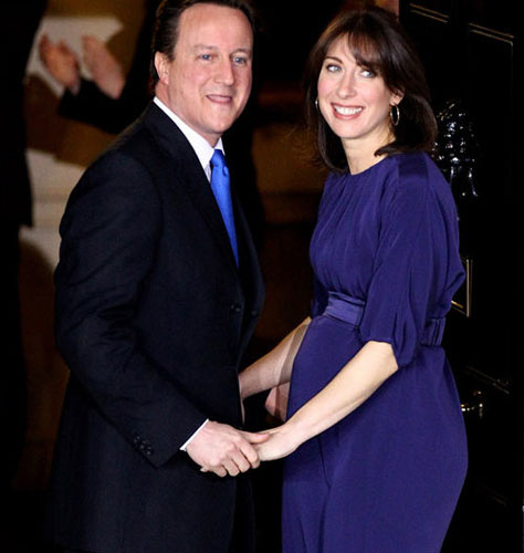 卡梅伦携手夫人萨曼莎一同入住唐宁街的回眸瞬间,两人灿烂的笑容也意味着英国新的明天到来,同时老布朗得搬家了。