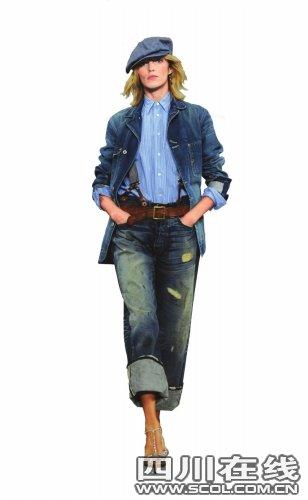 RalphLauren在2010春夏纽约时装周系列发布会上,让“男友式”牛仔新势力大放异彩。卷边、磨白做旧、夸张的破洞设计的男友式牛仔,加上一丝不苟的条纹衬衫、小西服外套或者牛仔夹克,再配上一顶牛仔报童帽,RalphLauren将女人骨子里的刚强和率性风范发挥到极致,大张旗鼓地向全世界宣示“大女人主义”:即使是牛仔也要穿得比男人更有型。而Lacoste的“男友式”牛仔则更为内敛,保留了经典的宽裤管和卷边设计,较之有些咄咄逼人的RalphLauren,Lacoste更在有型之中展现轻松平和的生活态度。