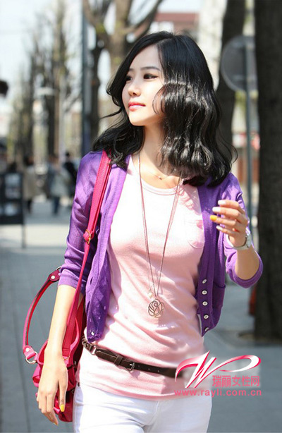 紫色小开衫约会穿上它很迷人