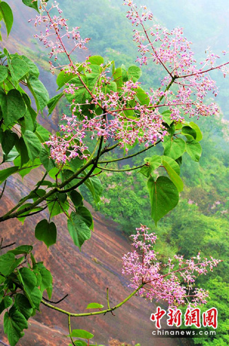 据了解,丹霞梧桐是丹霞山特有物种,主要分布在岩壁及山谷的浅土层中,多有小石积、金针花、还魂草、石蒜等傍生植物,开花期为每年的5月至6月。