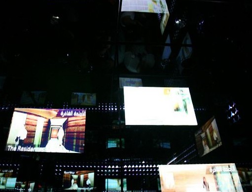在电梯内放一部电视短片,使人查觉不到速度很快。