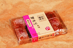 三黏糕是用杨桃做成的,切成长条状,用盐或者糖腌渍而成。酸味的三黏糕吃得人直眯眼,甜的比较黏手,小孩子吃完后脸上嘴巴上都沾满了糖浆,“小花猫”的昵称也由此而来。据说,这是那个年代中最常见的零食,卖相虽然不怎么样,但却广受大人小孩的喜爱。