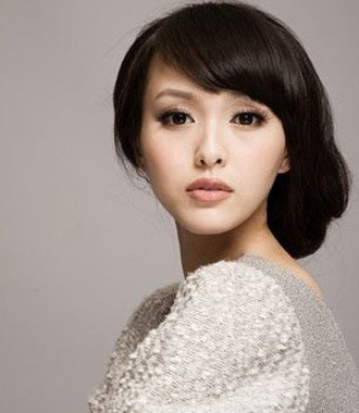 发型解析:饱满丰盈的斜盘发配半月刘海,让唐嫣仿佛童话中的白雪公主般典雅温柔。