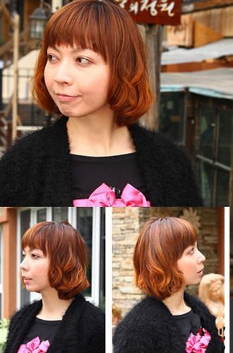 发型设计:浅橘色的蓬松鲍勃头发型,橘色虽然很耀眼很氧气,但不怎么适合中性女性哦!齐眉的碎刘海,凸显了一点可爱的气息。这款造型适合中性女性。提示中性女性不要染这种发色,可以染浅点的发色呢。