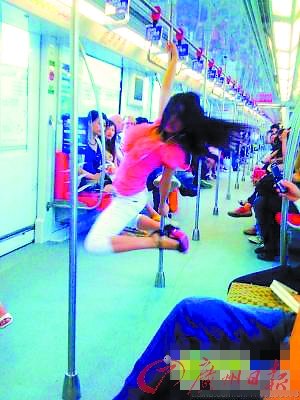 近日,一篇名为《南京地铁二号线粉红女郎大秀钢管舞》的帖子出现在各大论坛,帖子称,6月1日下午3点多,南京地铁二号线经过学则路站时,车厢内一名粉红女郎突然站起身,走到车厢一根扶栏下,旁若无人的大秀“钢管舞”。