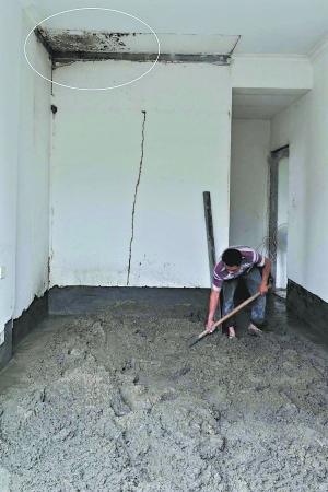 他指着自家后门的门槛告诉记者,一到下雨,雨就往家里灌,前一阵一晚就浸了两次,他加高了门槛1米多,仍有水从外墙上面的风化石里渗过来。
