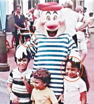 唐娜的这张童年照是在佛罗里达州迪斯尼乐园旅游时拍摄的,唐娜和两个弟弟站在照片的前方,他们当时正在和迪斯尼动画片《小飞侠》中的一个卡通人物造型“史米先生”合影。当时,亚历克斯的父亲也正好带着年幼的他到迪斯尼乐园游玩,他们当时位于唐娜身后不远处,正好也被拍进了这张照片中。