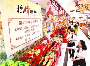 今天上午,东安市场的工作人员为端午专柜补起汇聚南北风情的九大品牌的三十余种货品,等待端午节前的客流高峰。白继开摄