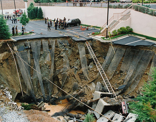 1993年6月,美国亚特兰大市出现超大“天坑”。巨坑出现后,亚特兰大警方立即封锁现场,并协助相关工作人员进行了细致的勘察。