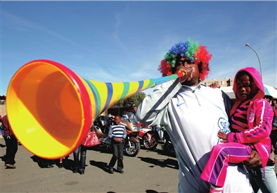 在本届世界杯上,一种叫做“喔喔祖拉”的非洲传统喇叭被全世界球迷所熟知,这个东西发出的类似于蜜蜂叫的响声也引起了争议。日前,“喔喔祖拉”已开始在淘宝网上热卖。对于此物应不应该出现在本地绿茵场观众席上,北京国安的球迷反应不一。