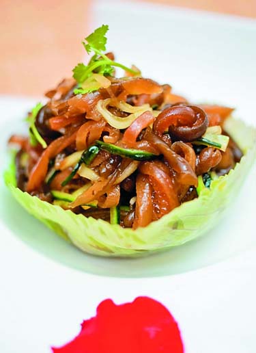 做法:海茸、黄瓜切丝,调味,加入香菜。