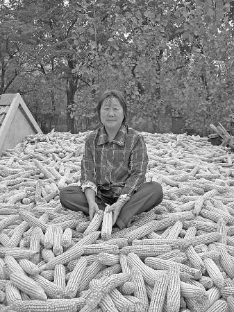 高囡去年给婆婆曾拍过一张照片,照片中的刘秀芹坐在高高的玉米堆上,身穿暗红色格子衬衣,藏青色长裤,皮肤是长期日晒后的红色,眼角爬满了皱纹,面带微笑,欣慰而坦然。