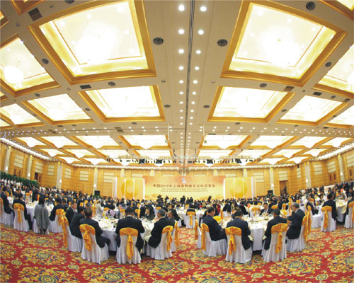 2010年4月30日晚6时许,上海国际会议中心,中国国家领导人伫立在华夏厅的红地毯中央,迎候前来出席上海世博会开幕式的外国贵宾。一幅巨大的背景板上,磅礴的旭日勾勒出中国国家馆、世博文化中心和浦东陆家嘴恢宏的建筑剪影。长长延伸的红地毯的另一端,陆续走上前来的有韩国、法国、巴勒斯坦、亚美尼亚、智利前、哈萨克斯坦、荷兰首相、西班牙众议长、欧盟委员等33位国家元首、政府首脑、议会领导人和国际组织代表及配偶。历时15分钟的迎宾仪式完毕后,国家领导人带领贵宾们步入上海厅,在中国经典名曲《喜洋洋》的欢快旋律中,盛大的欢迎宴会正式开始。