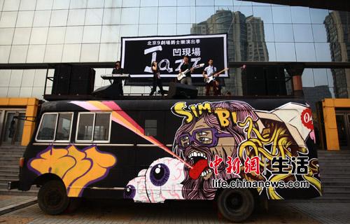 6月18日(周五)晚七时,朝阳区文化馆门前,一辆被涂鸦过的老式客运汽车的车顶上,四五个年轻乐手正在演奏他们自己的音乐,为“9剧场爵士乐演出季”首演营造声势。在9剧场后院的“凹现场”里,痴人乐队的演出正准备开场。据介绍,此次爵士乐演出季邀请了北京爵士乐团、郝云与乐队、PB33乐队、浪荡绅士乐队、莫瑞诺三重奏、咸糖五重奏、圣旨到大乐队、痴人乐队、南无乐队等京城知名的乐队阵容。从18日开始,每周五、周六,“凹现场”都将为爵士乐迷们奉献一场现场爵士乐演出,首轮演出季将持续到10月中旬。这将是一场集合了Blues(蓝调)、Latin(拉丁)、Funk(放克)、BigBand(大乐队)、Swing(摇摆)、Free Jazz(自由爵士)、Vocal Jazz(人声爵士)、Bop(波普)等各类爵士乐的盛宴,将掀起一波爵士乐旋风。