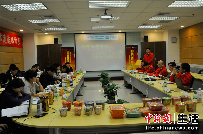 由中国新闻网财经中心主办的“2010见证•中国实力——求索企业可持续全国行”活动已经启动,康师傅控股有限公司成为本次活动的第二站。康师傅控股有限公司华北区董事长张百清、天津市开发区管委会办公室副主任杨静、康师傅控股有限公司中央研究所所长杨乾辉、康师傅控股有限公司方便面事业群副总裁刘乾宗、康师傅控股有限公司方便面事业群企划副总卢宗庆、康师傅控股有限公司方便面事业群经营本部协理王世琦、北京大学公共卫生学院教授李可基等与到访的中央媒体团举行了座谈。