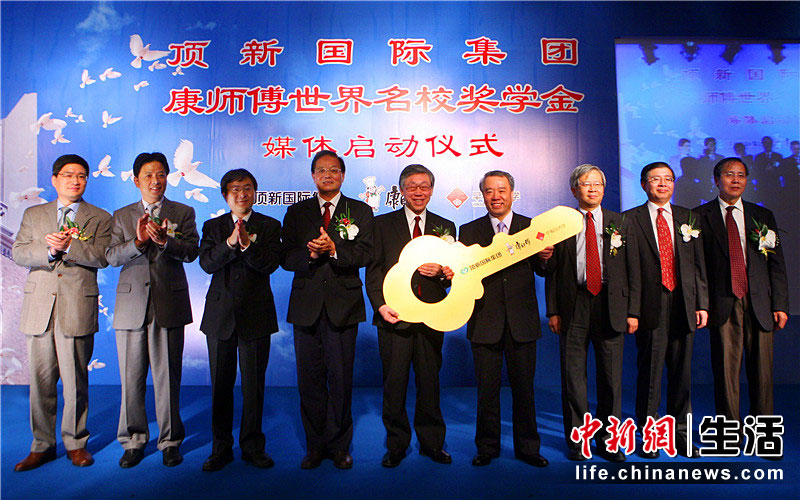 面对中国学生日益高涨的海外留学热情,作为始终关注中国高端人才培养的顶新国际集团以及旗下康师傅控股有限公司,偕同早稻田大学,宣布共同投入日币25.5亿,超过人民币1.8亿,以高额奖学金、大规模(5年,425个名额)资助中国优秀学生去世界名校深造。图为康师傅世界名校奖学金启动仪式。