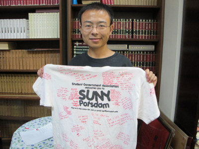 中新网8月18日电 据美国《世界日报》报道,“纽约州立大学—中国150”计划(SUNY-China150)的150名四川地震灾区大学生,2008年来美游学一年返回四川后,今秋陆续毕业,其中毕业于四川乐山师范大学英语系的刘弋圣即将返回他在“纽约州立大学—中国150”计划中就读的学校,研读信息技术管理硕士学位。刘弋圣17日到访当地联成公所,由联成公所协助安排住宿事宜。