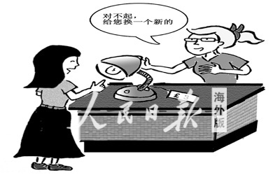 刚到英国的时候,王蔚到商场买了一盏台灯,很便宜,才3英镑。之后有一天,也不知道是什么原因,台灯突然不亮了。但这时距购买日期已经有5个多月了。抱着试试看的心态,她拿着小票,来到商场希望能维修一下。一位面容和蔼的女服务员接待了她。这位服务员问她,今天是否想拿回台灯,王蔚回答说当然希望尽快拿到。于是,服务员很爽快地拿出一盏崭新的台灯给她,并表示了诚挚的歉意。