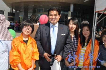 在会场,留学生们还和同时应邀来参加活动的日本众议院议员山本刚正进行了交谈,大家向山本议员介绍了她们在日本的留学生活以及对日本的印象,并向山本议员表述了她们希望中日友好能够世代相传的美好愿望。山本议员也对留学生为中日友好交流活动作出的努力给与了肯定,并向她们表示感谢,祝她们在日本学有所成,最后山本议员还和留学生们合影留念。