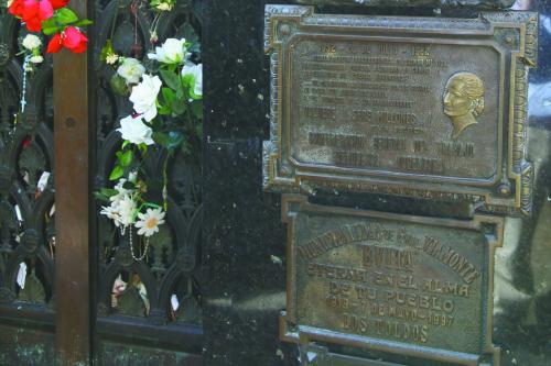 几乎所有的阿根廷人都记得庇隆夫人。有人爱她,有人恨她,但没人能忘记她。每天都有来自世界各地的游客和拥戴者来拜谒。她的墓前总有鲜花,虽然不多,有时一两束,有时只有一两朵,但从未间断。(范剑青)