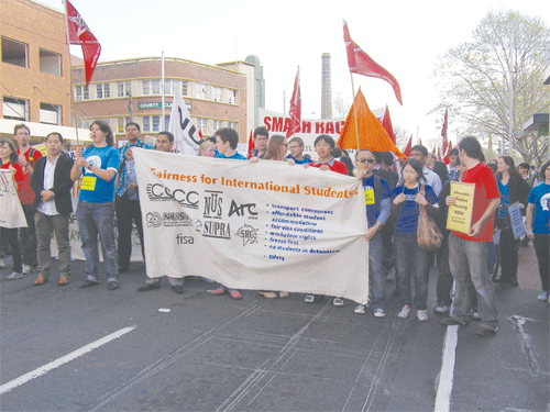 中新网9月2日电 据《澳洲日报》报道,9月2日下午1点至3点,澳大利亚新州留学生在悉尼科技大学(UTS)集合后,步行前往新州议会大厦前举行反歧视集会,要求新州政府不分国籍,对所有学生提供公平教育机会和同等福利待遇。