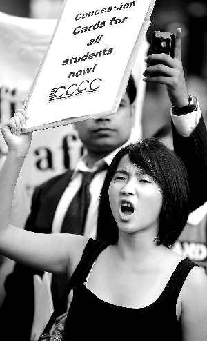 本月初,近千名留学生在悉尼举行了争取权益的游行,直接起因就是公交优惠卡问题———在留学生最多的新南威尔士州和维多利亚州,只有澳大利亚本地学生才能获得公交优惠卡,享受乘坐汽车、火车5折的待遇。