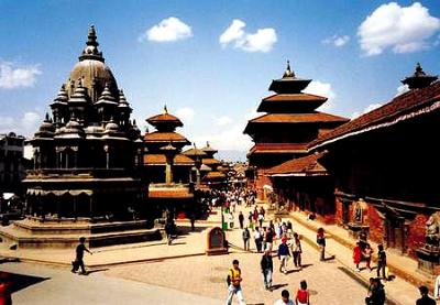 穿过泰美尔区的街道(严格的讲应当称小巷更准确),来到加德满都的DUBAR广场。广场西面几座高大的赤红色的纽瓦丽式的寺庙呈现在眼前,广场南面是库玛丽女神庙-当今世界上现存的活女神住的寺庙。砖木结构的三层楼四合围拢成院落,楼上住着被供奉为库玛丽女神的小女孩(这样称呼似乎不太尊重哟)。那里的每一扇门窗都是雕刻非常漂亮的木制艺术品。大门的旁边还放着女神的战车,每年重大节日活女神就会乘坐它游行检阅。