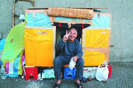 居住在简陋的硬纸板小屋里的流浪者,多是靠体力谋生的人。他们身上和纸板流浪屋都散发着一阵阵酸臭味。一位出生于北海道的流浪汉,18岁时来到东京成为一名建筑工人。这位流浪汉说,那个时候年轻,活也多得干不完,所以工余的时候就去寻欢作乐。甚至还曾经给自己存下过150万日元的存款。不过,随着日本泡沫经济破灭和长期的经济不振,建筑工地的活越来越难找,而他自己也年事渐高,可干的体力活越来越有限。5年前他干过的最后一份工作,是在一处建筑工地做零工,这以后再也找不到合适的活干了。现在他每天靠拾废品、或去寺庙、教堂领取救济口粮度日。
