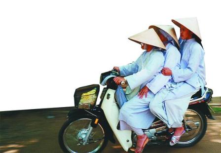 汽车在越南无疑是“弱势”交通工具,至少在效率上无法和摩托车抗衡。在街头,看到摩托车载着比人还高的货物不必惊讶,这里有号称最牛的摩托车手;见到一家四口挤在一辆摩托车上也不用担心,据说一辆摩托车载7个人都没问题;如果从你身边风驰电掣呼啸而过的摩托车手是位老人家也不用大惊小怪,“越南速度”没年龄差别。