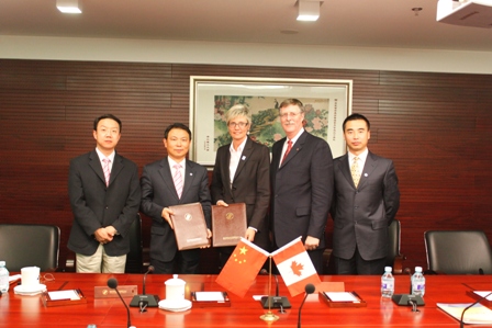 中新网11月20日电 据教育部留学服务中心网站报道,11月16日, 国家留学基金管理委员李建民副秘书长会见了来访的加拿大女王大学副校长Dr. Janice DeakinDr 和Dr. John Dixon一行,并就设立博士生项目签署了双方合作备忘录。协议规定,国家留学基金委和加拿大女王大学将共同资助中国优秀学生到该校攻读博士学位。