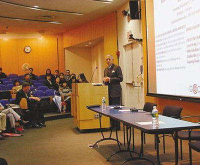 中新网12月7日电 据美国《世界日报》报道,由中国留学生组织“全球中国联接” (Global China Connection)举办的首届冬季金融论坛5日在哥伦比亚大学商学院举行,论坛的主题包括“下一年度中国资本市场”及“信用制度在中国”等。活动吸引100多名哥大商学院的学生听讲,会议中还邀请到前美国驻联合国大使徐西泉(Sichan Siv)进行演说。