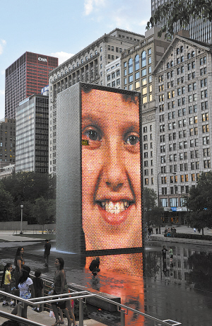 从严肃到微笑,“皇冠喷泉”上映射出的一个个脸孔,是最真实的芝加哥面容。它跨越种族、年龄、身份和性别,是芝加哥多元化最生动的体现。