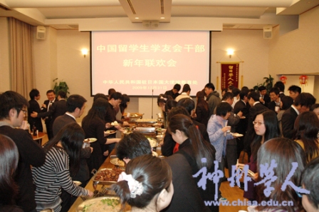 2009年12月31日晚,东京地区30多所大学的学友会主要干部百余人怀着喜悦的心情,憧憬着美好的2010年,欢聚在中国驻日使馆教育处。