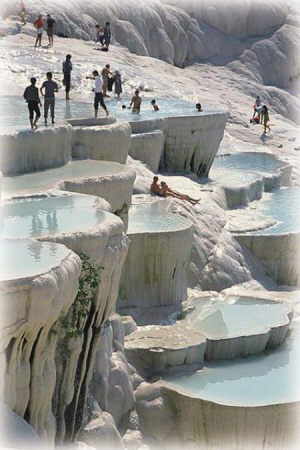 格莱梅以南三十公里处的Derinkuyu(朝Nigde方向)还有一处最著名的地下城市。七、八世纪时当地的基督徒居住在这里,把它当作避难所来躲避入侵的阿拉伯军队。到目前为止,人们在格莱梅地区已经发现了三十六座大大小小的地下城市,最多的在地下有八层走廊和房间。每座地下城市都有厨房、酒窖和橄榄压榨机、饭厅、马厩、卧室、储藏室、深井、通气口,甚至还有教堂,可谓旷世奇作。